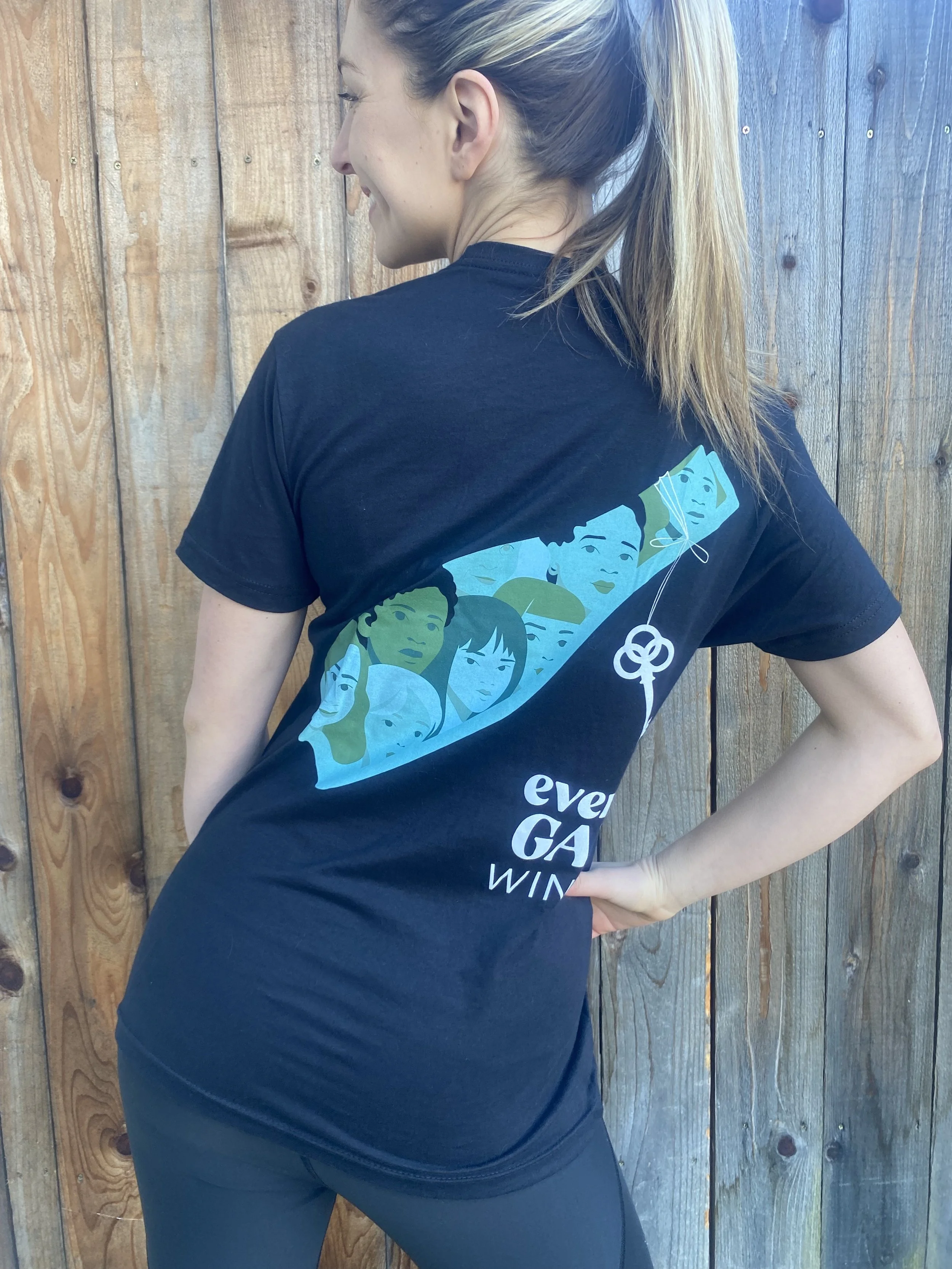 This Next Level Apparel Unisex T-shirt is soft and breathable. The design is business on the front, party on the back! The back graphic represents our core values of diversity and inclusion in the most vibrant and glamorous way. Become a true part of the everyGAL tribe by wearing this t-shirt to our events.